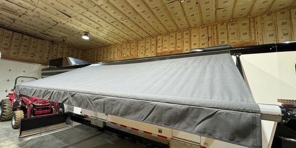 Our customer needed to replace all of his four Girard G5000 slide out toppers. They had come apart due to the polyester/cotton thread degrading and the canvas succumbing to dry rot and thus stretching.