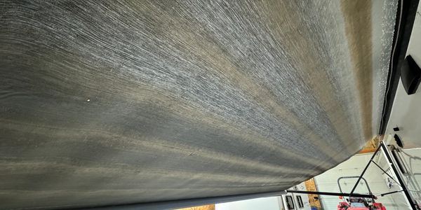 Our customer was tired of this laminated vinyl OEM awning and ordered a Stone Vos replacement Weatherwrap awning.