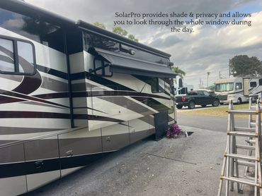 Our customer chose a Black Migliore vinyl wrap to match the black hardware. Once the awning is rolled up the rollertube & canvas fabric is covered by a 14" wrap that protects the CoachGuard acrylic canvas from wear and tear. The look is streamlined and neat.